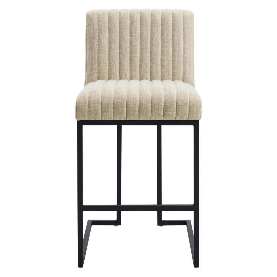 - Channel Tufted Counter Stool Soft Fabric Upholstery Matte Black Stainless Steel Frame Sled Base Dense Foam Padding Non-Marking Foot Caps Counter Stool Weight Capacity: 330 lbs.