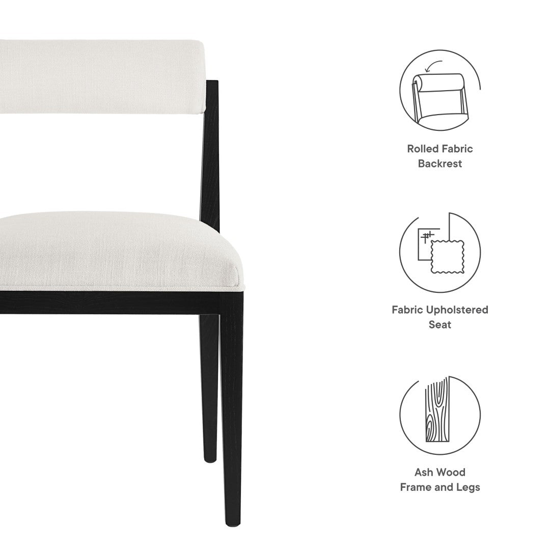 Elevate your dining or living space with a refined blend of modern lines and cozy comfort. This armless fabric dining chair pairs a sculpted, rolled backrest and a fixed cushioned seat with a warm ash wood frame, creating a versatile piece that works equally well as a dining chair, accent chair, or kitchen seating. Thoughtful details — from non-marking foot pins to a durable upholstery finish — ensure everyday usability without sacrificing style.