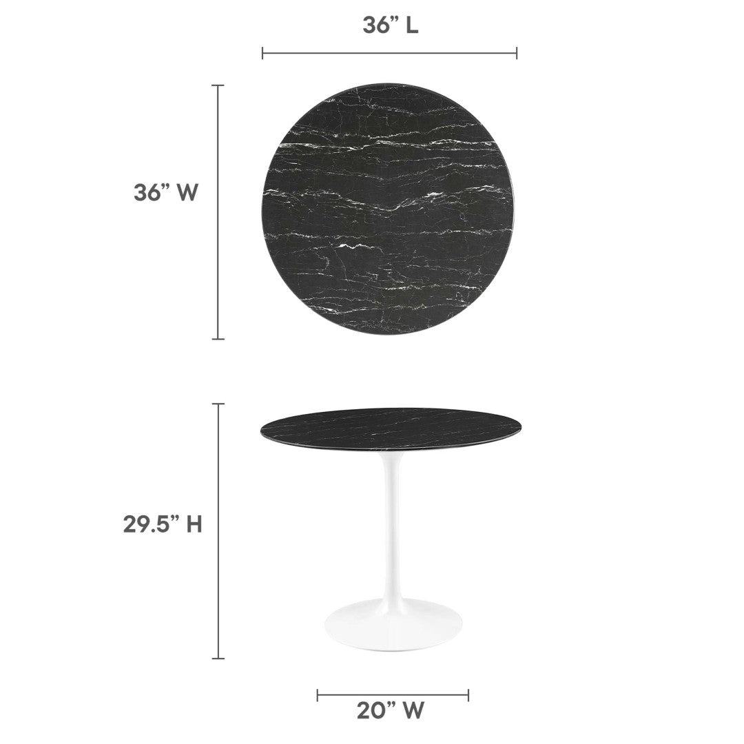 Bring contemporary elegance to your dining space with this refined round pedestal table. Designed for intimate gatherings and everyday meals, its faux marble top and tapered metal base combine mid-century lines with modern durability, making it a versatile centerpiece for kitchens, breakfast nooks, or small dining rooms.