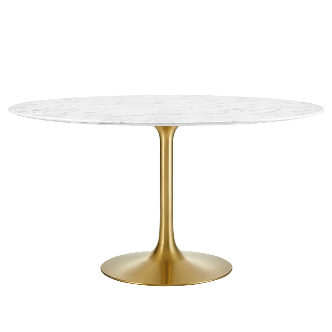 - Base: Iconic mid-century inspired pedestal with a sleek tapered metal base finished in chip-resistant brushed gold.