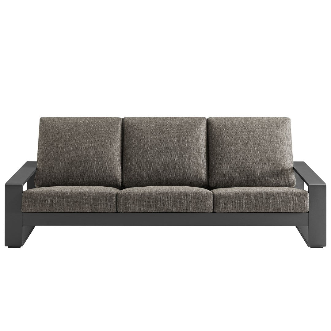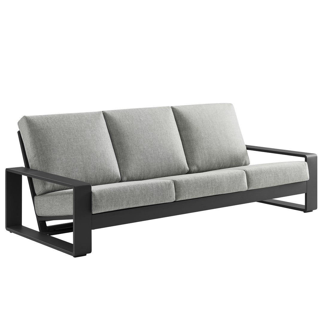 Relax in modern comfort with the Lirienne outdoor sofa — a sculptural, weather-ready centerpiece that combines clean contemporary lines with durable construction and plush seating. Thoughtfully designed for three-person lounging, this aluminum sofa balances refined aesthetics with easy maintenance so you can enjoy alfresco living on a sunlit deck or a shaded patio.
