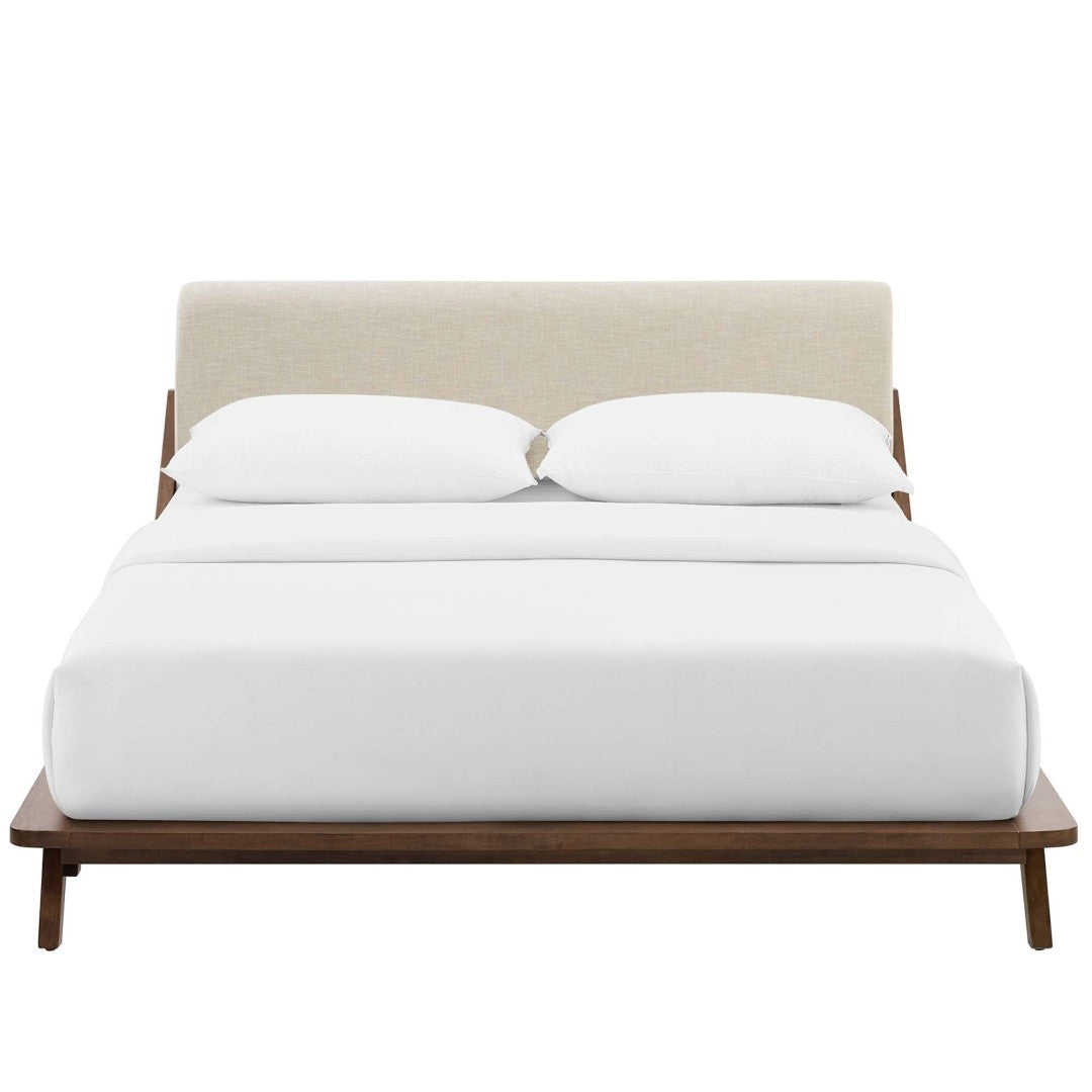 Bring mid-century modern elegance and sturdy support to your bedroom with the Luella upholstered queen platform bed. Its clean sled silhouette and soft polyester headboard create a refined focal point, while the solid wood frame and slatted support system deliver durable, quiet performance for a wide variety of mattress types. Ideal for master suites and guest rooms, Luella blends timeless style with practical construction for everyday comfort.