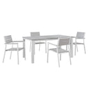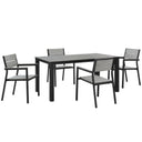Bring coastal-inspired style to your outdoor dining area with this modern five-piece patio set. Combining durable, weather-ready materials with a refined synthetic wood plank look and sleek powder-coated aluminum framing, the collection balances comfort, low maintenance, and contemporary design — ideal for patios, poolside lounges, and backyard gatherings.