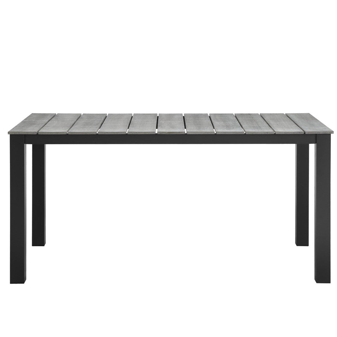 - Modern Outdoor Dining Set Light Gray Synthetic Wood Slats Powder Coated Aluminum Frame Plastic Base Glides Max Chair Weight: 331 Assembly Required