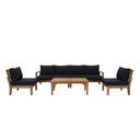 Experience relaxed luxury with the Marina Teak Outdoor Patio Sofa Sectional — a thoughtfully designed 7-piece set that combines durable teak construction with weather-resistant cushions and a clean, modern aesthetic. Ideal for family gatherings or entertaining friends, this collection delivers comfort, longevity, and low-maintenance outdoor style that complements any patio, deck, or backyard living space. Assembly required.