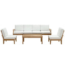 - Solid teak wood construction Richly textured wood graining Water & UV Resistant Cushions Machine Washable Covers