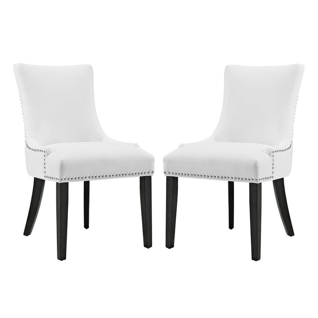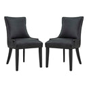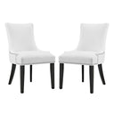 Elevate your dining room with the Marquis Faux Leather Dining Chairs — a blend of classic elegance and modern comfort. These tufted, button-back chairs feature graceful curves and antique copper nailhead trim that add visual interest, while dense foam padding and durable vinyl upholstery provide lasting comfort for dinner parties and daily use. Built on a solid wood frame with non-marking foot glides, the Marquis chairs combine sturdy construction with floor-friendly practicality.