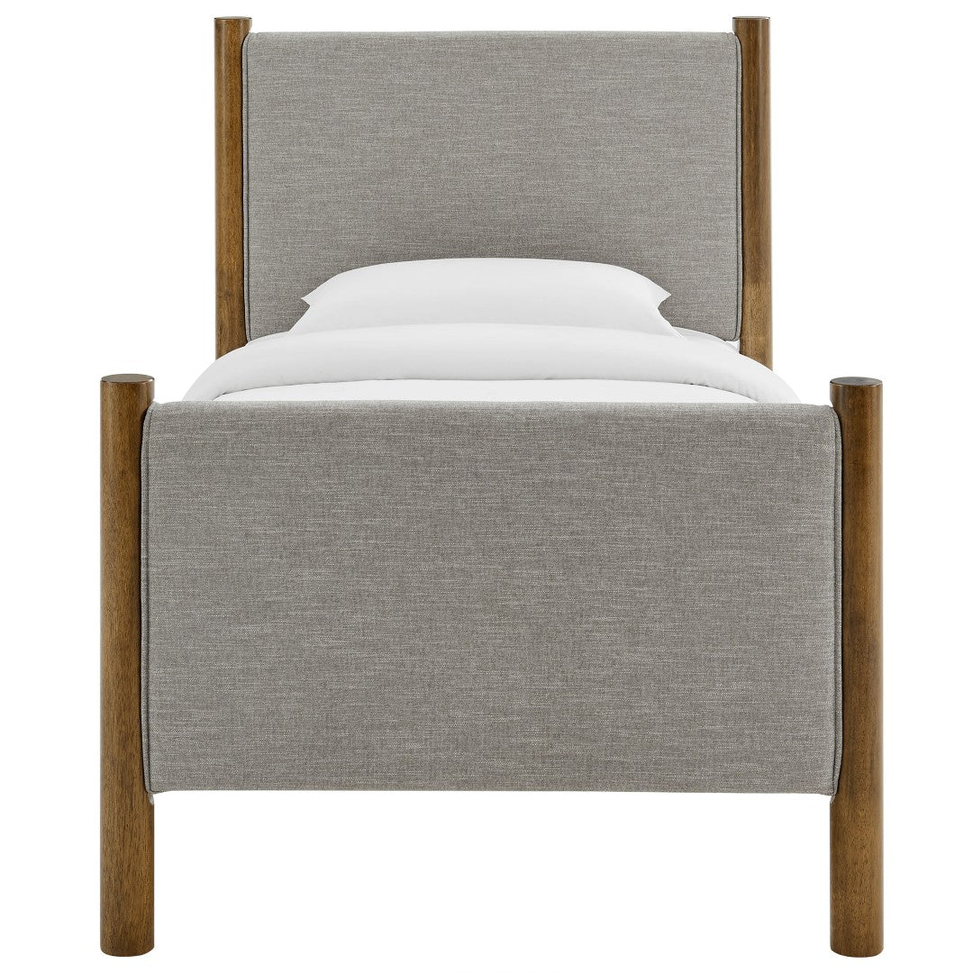 Transform your bedroom with the Maven Twin Size Platform Bed — a refined combination of modern style and everyday comfort. Padded, heathered-weave upholstery and solid wood posts create a warm, tailored look while the slatted platform construction supports your mattress without a box spring. Compact yet sturdy, this bed is ideal for small spaces, kids’ rooms, or guest areas where both form and function matter.