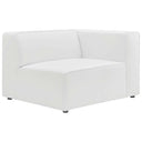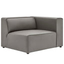 - Sectional Sofa Right-Arm Chair Vegan Leather Upholstery Generous Foam Padded Cushions Elegant Trim Piping Sturdy Plastic Legs Chair Weight Capacity: 440 lbs.