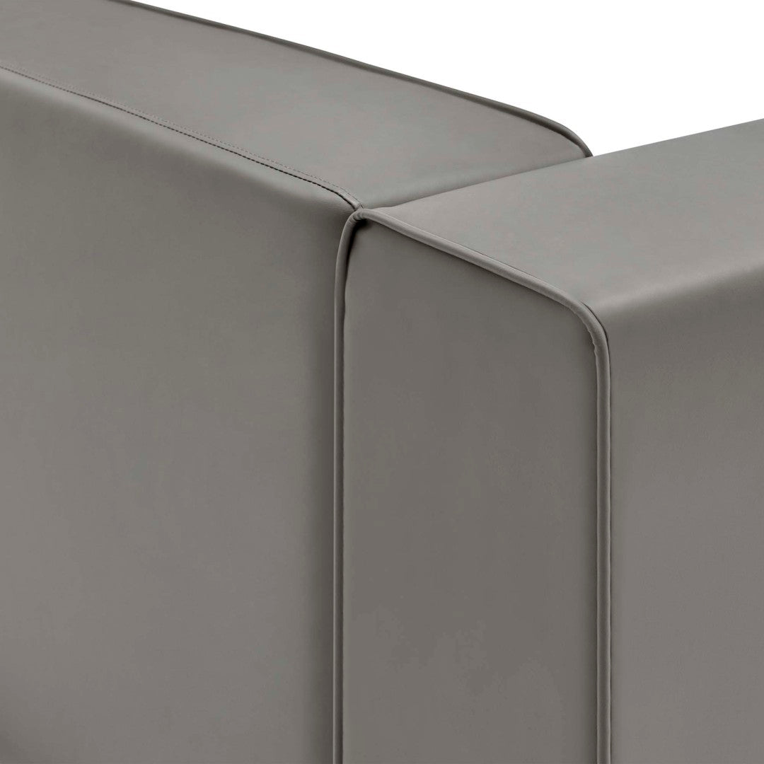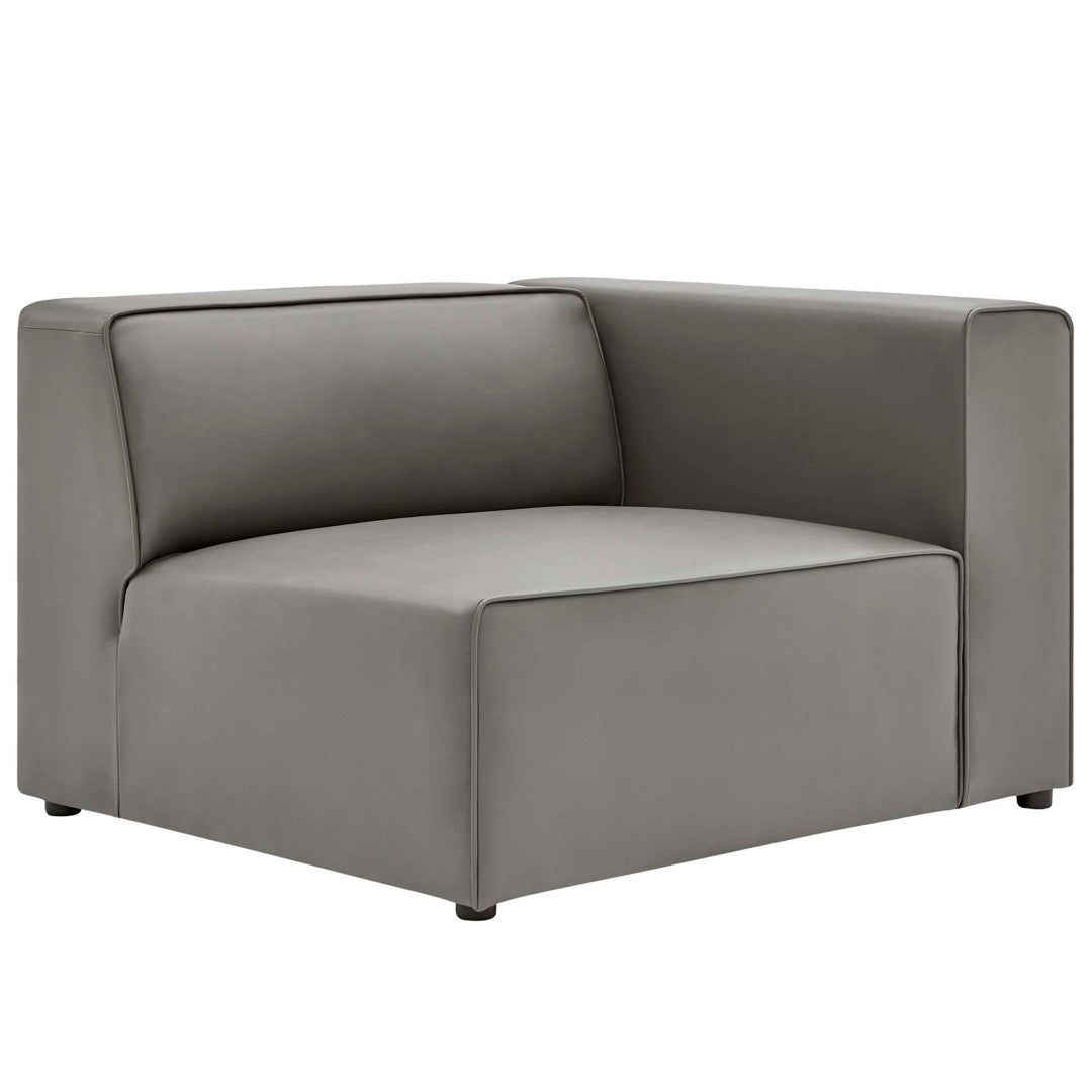 Relax in modern comfort with the Mingle Vegan Leather Right-Arm Chair — a stylish, modular seating piece designed to expand visual space while delivering generous cushioning and dependable support. Tailored for contemporary living and lounge areas, this chair pairs rich vegan leather upholstery and elegant piping with dense foam padding to provide both comfort and structure. Lightweight plastic legs ensure steady support while allowing easy reconfiguration as part of a sectional arrangement for entertaining or everyday use.