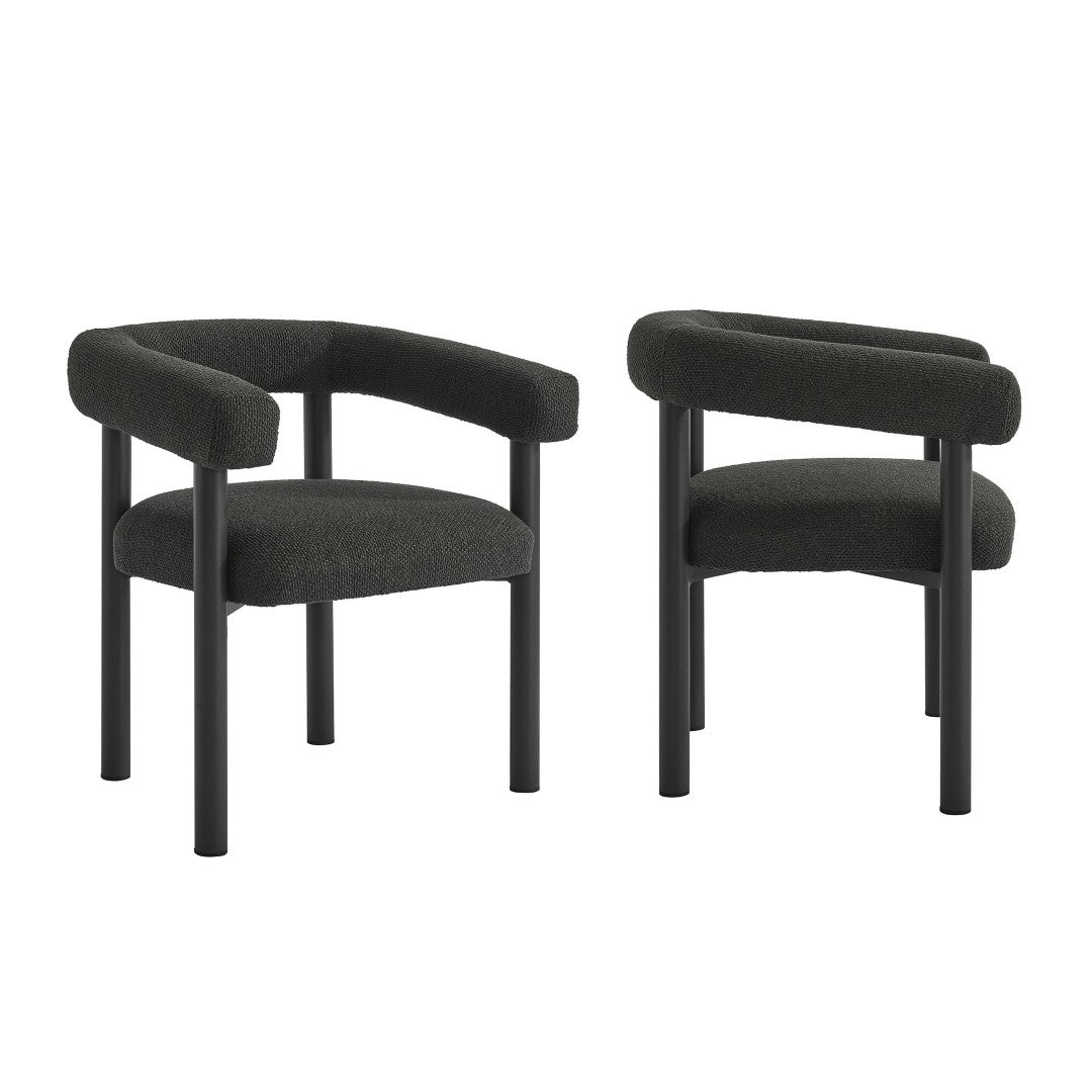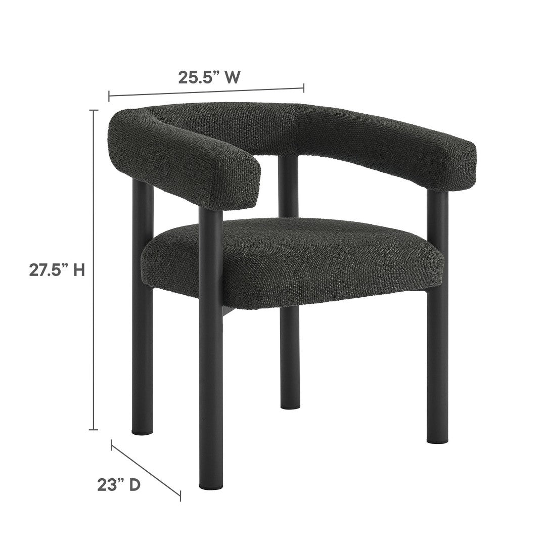 - Chair Dimensions: Dining Armchair: 23"L x 25.5"W x 27.5"H — curved-back design with armrests for ergonomic comfort