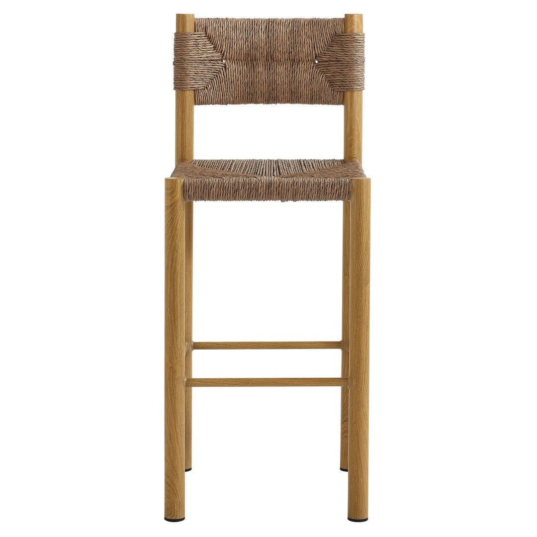 Transform your outdoor space into a refined, comfortable gathering spot with this pair of Parkland bar-height stools. Combining weather-resistant synthetic rattan with a lightweight aluminum frame finished in a warm wood-grain look, these stools deliver durable performance and elevated style for patios, decks, poolside bars, or outdoor kitchens. Fully assembled and ready to use, they offer immediate comfort, stable support, and low-maintenance care so you can focus on entertaining.