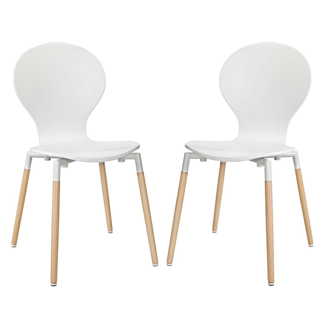 Discover comfort and contemporary style with this set of two Path dining chairs. Their flowing, circular silhouette offers visual calm while providing sturdy support for everyday meals and conversations. Crafted with a fiberboard shell and solid beech wood legs, these chairs balance durability with a lightweight, modern profile—ideal for dining rooms, breakfast nooks, or as accent seating.