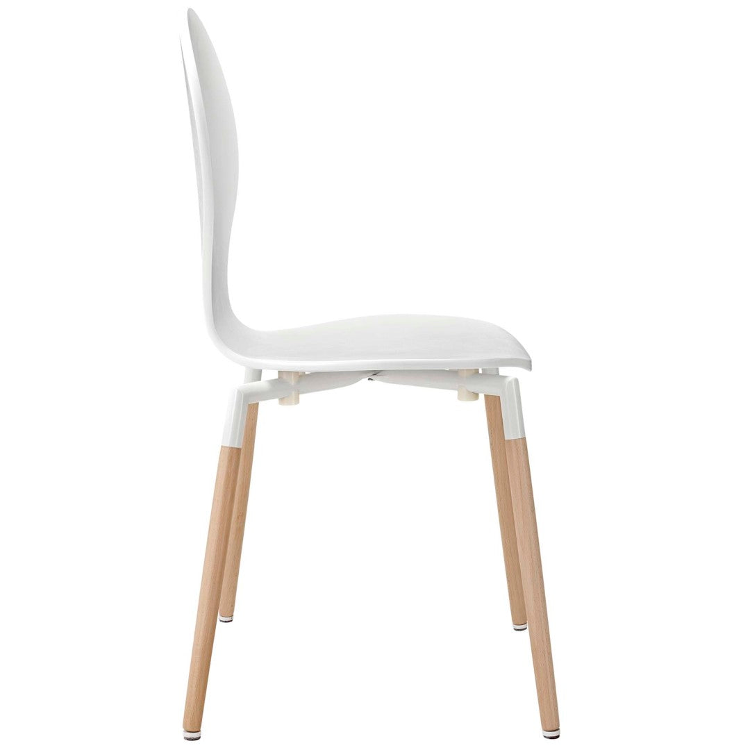 - Materials: Molded fiberboard seat and back with solid beech wood legs for lasting stability