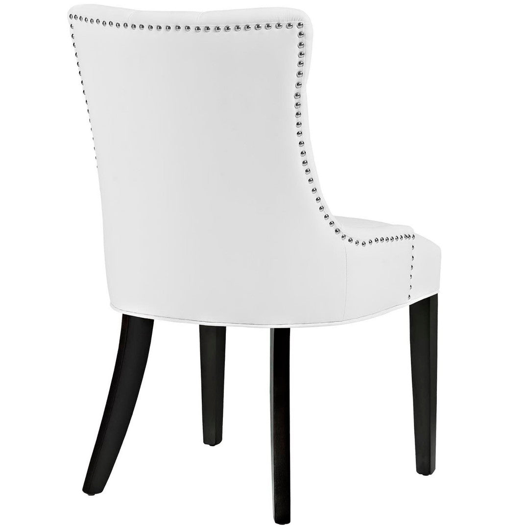 Elevate your dining space with a blend of classic elegance and modern comfort. The Regent Dining Side Chair offers refined details—tufted button upholstery, nailhead trim, and tapered wood legs—paired with plush foam padding and durable vinyl for an inviting seat that suits both traditional and contemporary interiors.