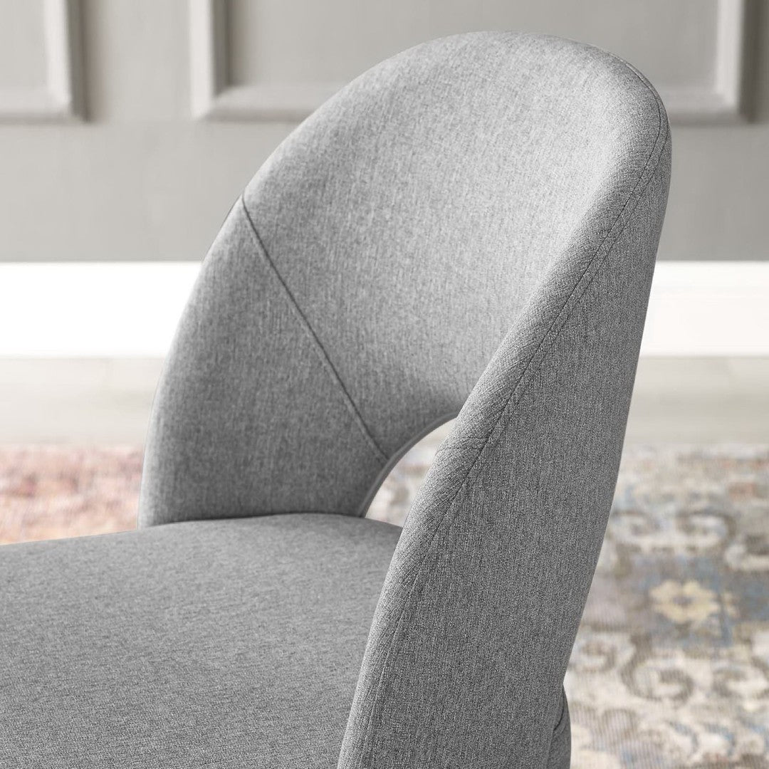 Elevate your dining space with the Rouse Upholstered Fabric Dining Side Chair — a modern take on mid-century elegance that blends comfort, durable construction, and refined styling. Densely padded foam and soft fabric upholstery provide supportive seating, while sculpted bentwood contours and splayed matte-black stainless steel legs deliver a sleek, sculptural profile. Ideal for dining rooms, breakfast nooks, or as accent seating, this chair balances visual appeal with everyday practicality.