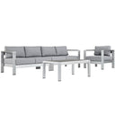 Upgrade your outdoor living space with a durable, modern sectional set designed for comfort and low-maintenance performance. The Shore 4 Piece Outdoor Patio Aluminum Sectional Sofa Set combines anodized brushed aluminum frames with weather-resistant fabric canvas and non-marking plastic foot caps to deliver a chic, long-lasting solution for patios, decks, and poolside lounges. Its modular layout and supportive cushions create a versatile seating arrangement that’s easy to style for casual gatherings or quiet afternoons outdoors.