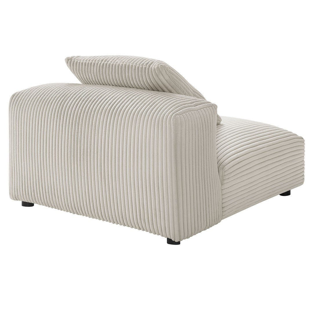 Experience relaxed, modern comfort with this oversized modular corduroy armless chair — ideal as a standalone lounge seat or combined into a sectional for flexible seating arrangements. Thoughtfully engineered for durability and everyday use, it pairs cozy corduroy upholstery and plush foam padding with a sturdy frame and spring support system to deliver a premium, supportive sit. Non-marking glides protect floors and the included accent pillow adds extra comfort and style, while the modular design lets you reconfigure or expand your layout as needed.