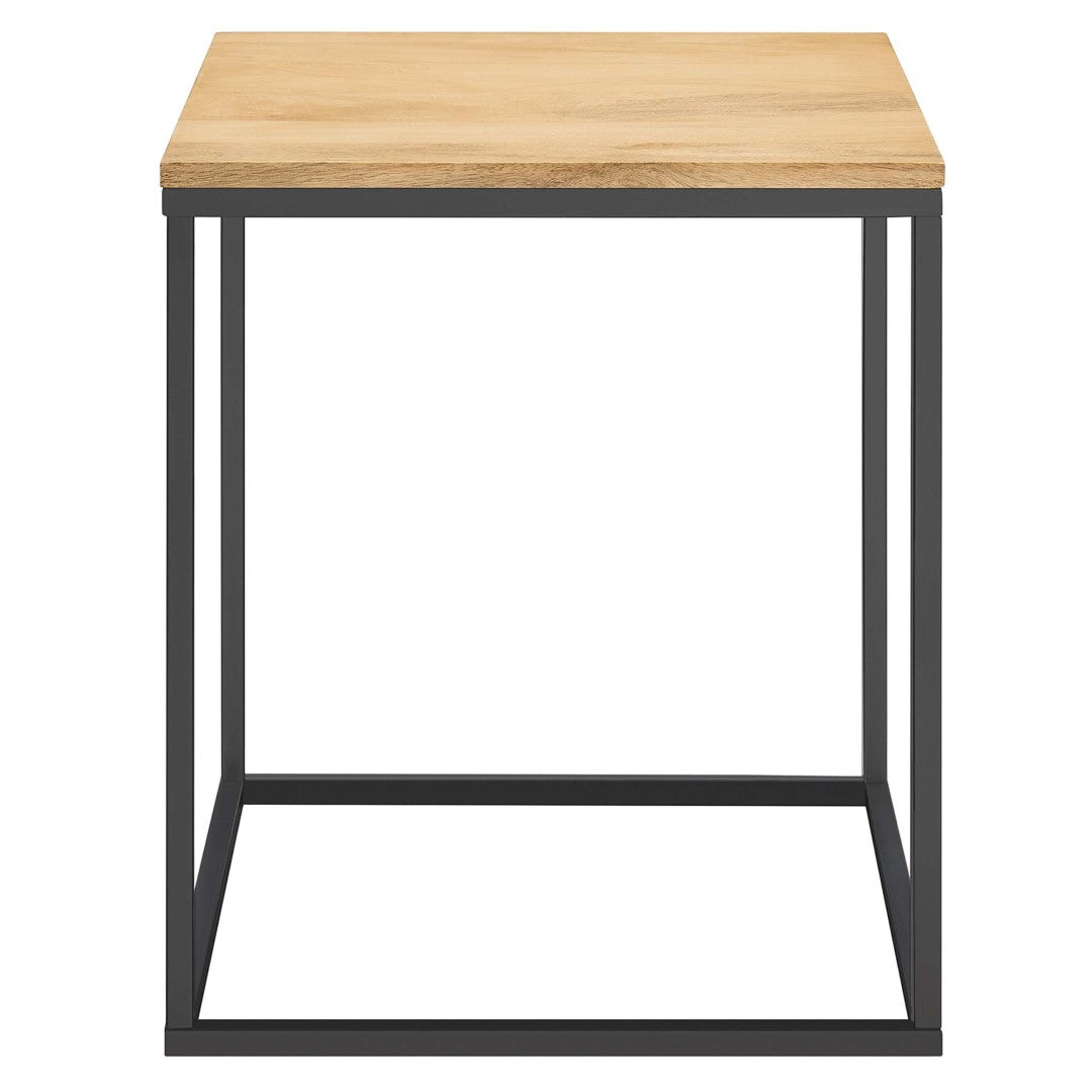 Bring modern industrial warmth to any room with this compact square side table featuring a mango wood top and a sleek powder-coated metal frame. Its clean, linear silhouette complements contemporary and transitional decor while offering a durable surface for everyday use — from holding drinks and lamps to displaying plants and decorative objects. Easy to assemble and equipped with non-marking floor glides, it’s designed for both style and practicality in small spaces.