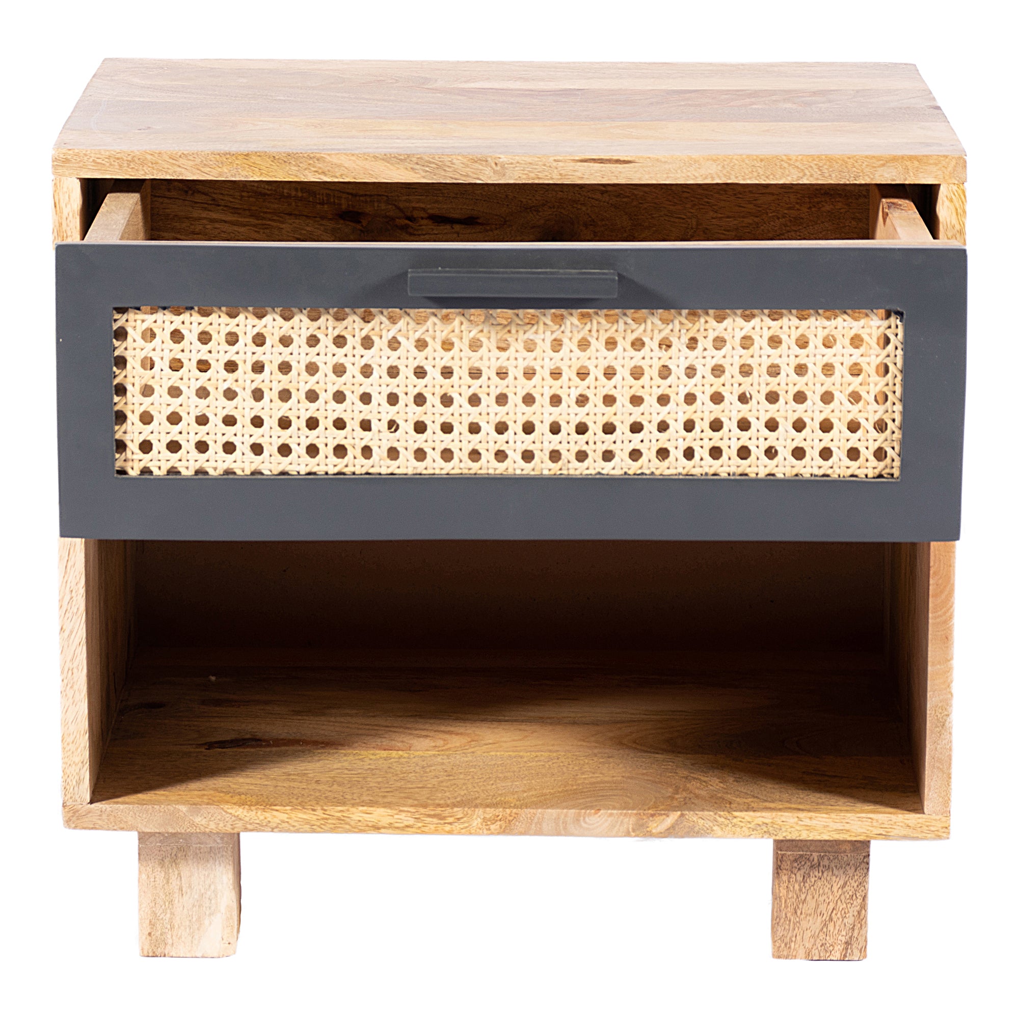 - Features 1: Made using a combination of mango wood and woven cane, for a fresh and natural look.