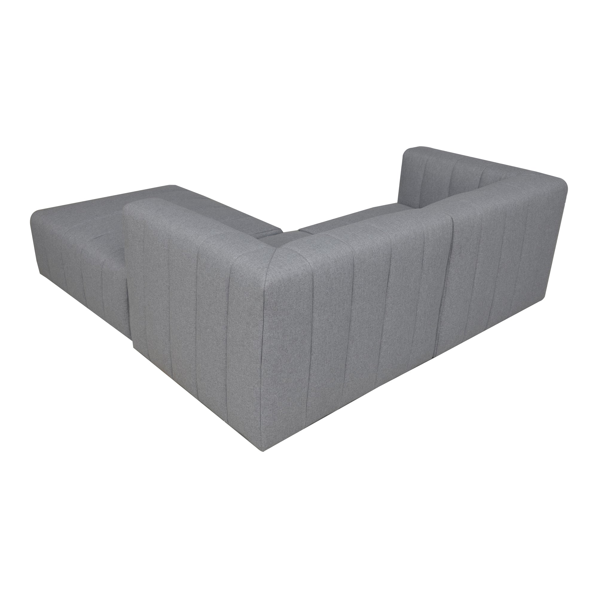 A sectional collection that finds poetry in the motion of modular design. With quiet earth tones and sculptured form, the Lyric collection offers a plump silhouette designed to be mixed and matched to harmonize your space. A modern transformation, the Lyric Nook sectional features a deep-set, luxurious seat with stylish channel stitching that adds texture and depth. With a pine and plywood frame, this 2-piece sofa is sturdy and supportive, with a spring suspension that offers plush decadence. Its buttery soft upholstery pairs with its artistic form to create a couch that's both relaxed and unique. For modular style that will leave you in rhapsody, you're free to play around with space and seating until you get the perfect fit.