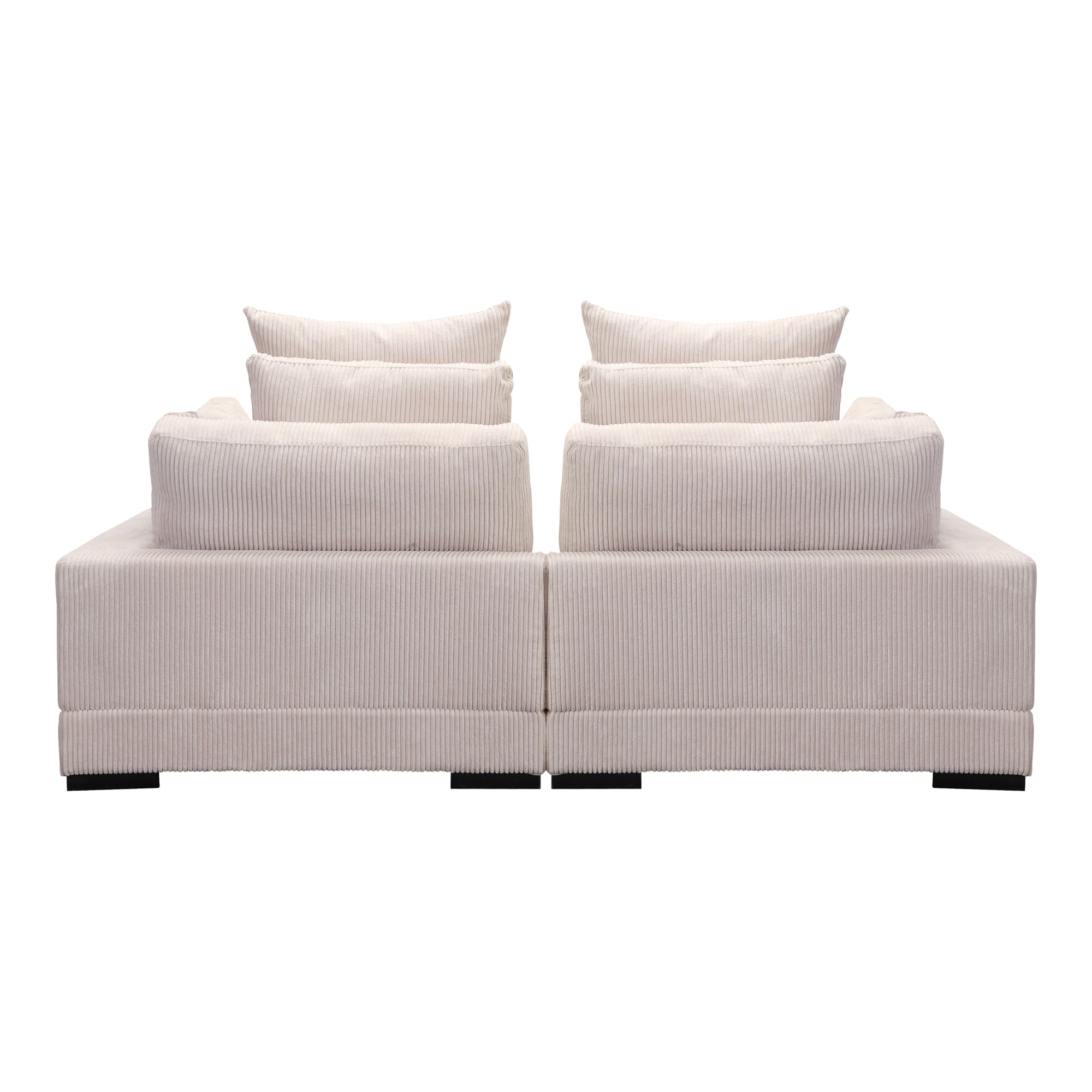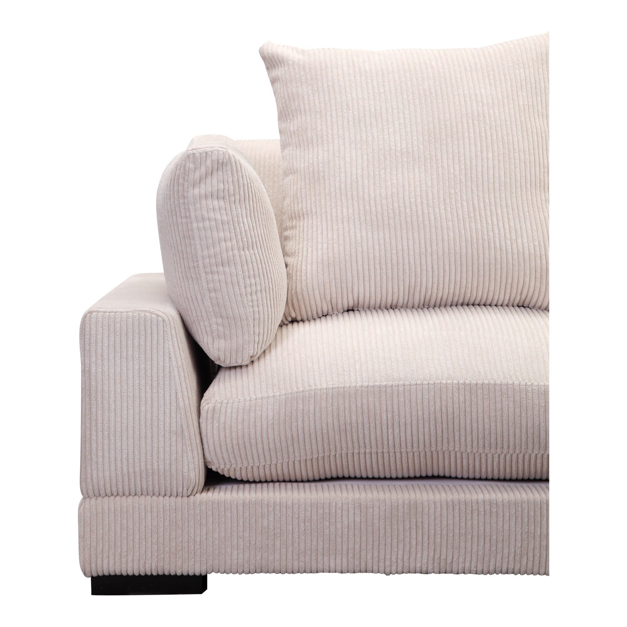 Seriously comfortable, seriously stylish. Either at home or in your commercial space, you can get cozier & cushier using furniture that encourages the softer moments of calm and focus - just like Tumble's mix and match modular pieces. Tumble's corduroy naturally softens the sharp edges and hard lines of other accents like coffee and end tables with its inherent plushness. Framed in solid eucalyptus wood with extra, fully down-filled, removable back cushions, the Tumble Nook is an ideal modular dream. This sectional’s soft corduroy will immediately add dimension, intrigue, lift, and comfort to any environment.