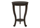 - This fashionable and classically designed round accent table, with a dark walnut brown veneer finish adds an elegant touch to any room.