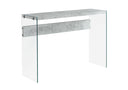 - Spacious table top of this glass console table provides ample surface area for the display of plants, books or other decorative items