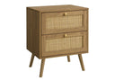 - Practical and modern, 24H accent table in a white laminate finish features two spacious storage drawers with a natural rattan panel and wood handles, perfect for organizing your essentials.