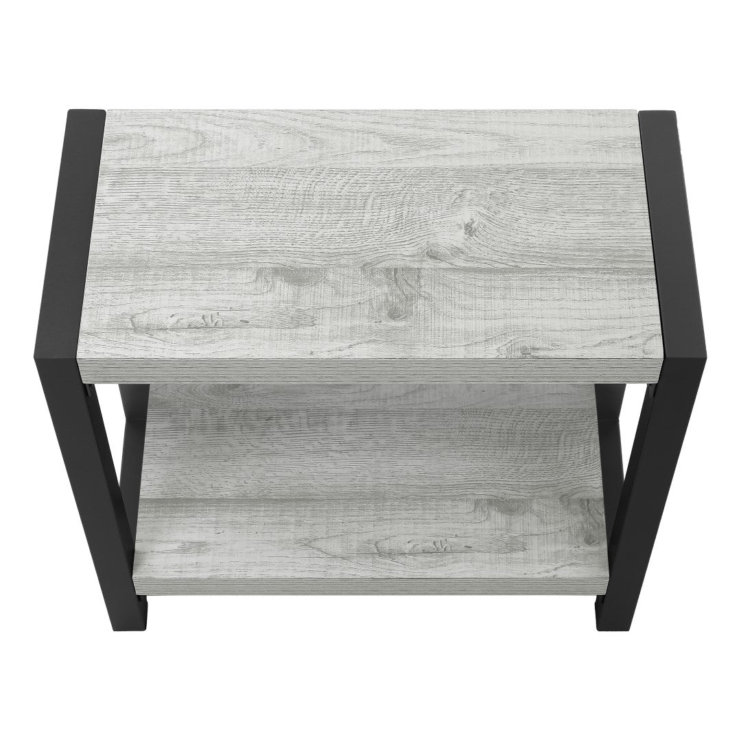- 2-tier accent table with a thick, rectangular tabletop and fixed lower shelf in a smooth, grey wood-look finish