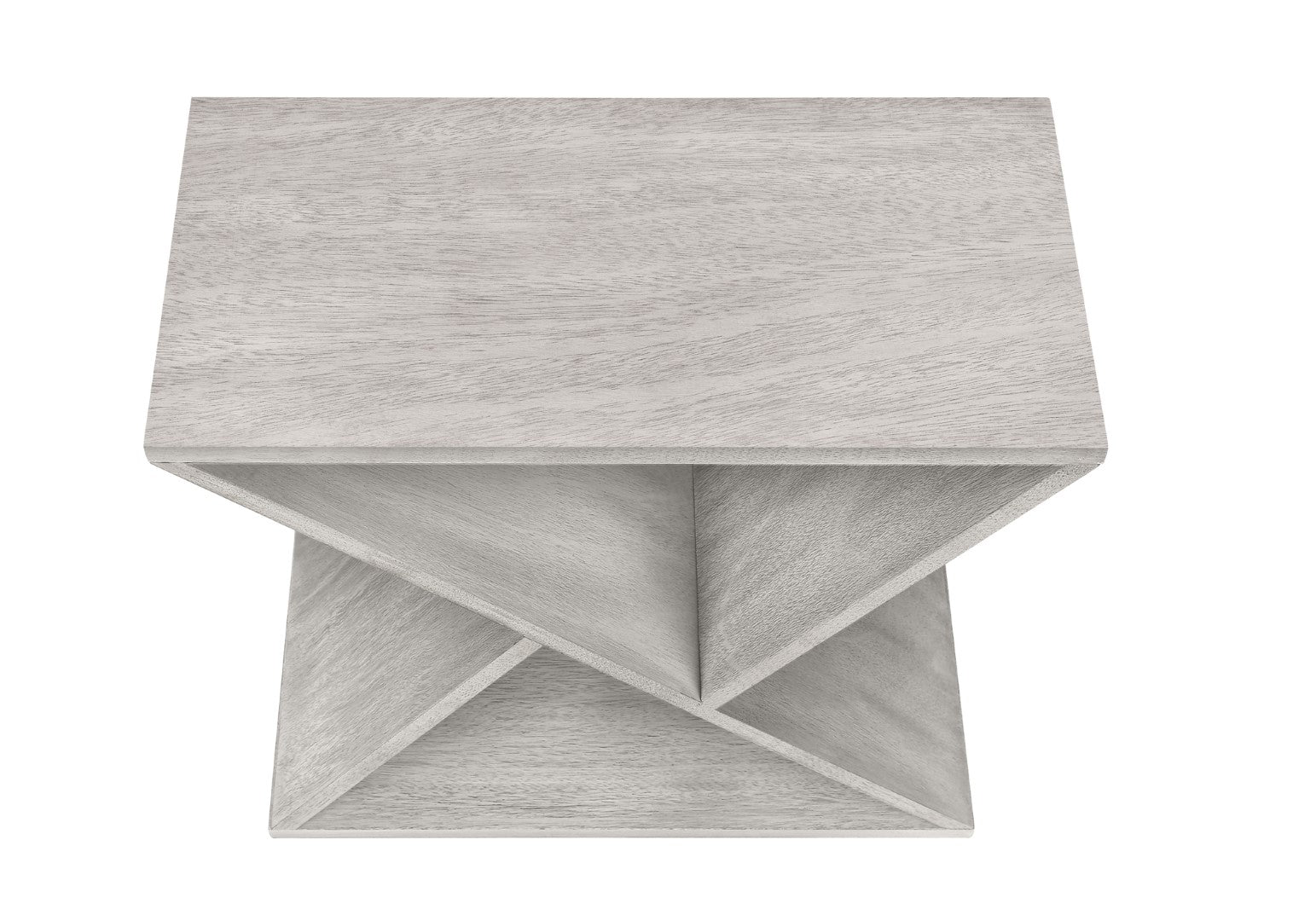 - This contemporary and fashionable 24 inch high washed grey veneer accent table adds a trendy touch to any bedroom or living room space.