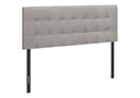 - Button-tufted upholstered headboard in a grey linen-look fabric