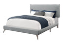 - Padded and upholstered platform bed in a timeless grey linen fabric
