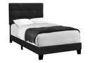 - Trendy and chic twin size platform bed frame in a transitional design, upholstered with a black velvet soft touch fabric for a fashionable bedroom upgrade.