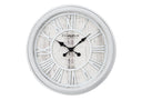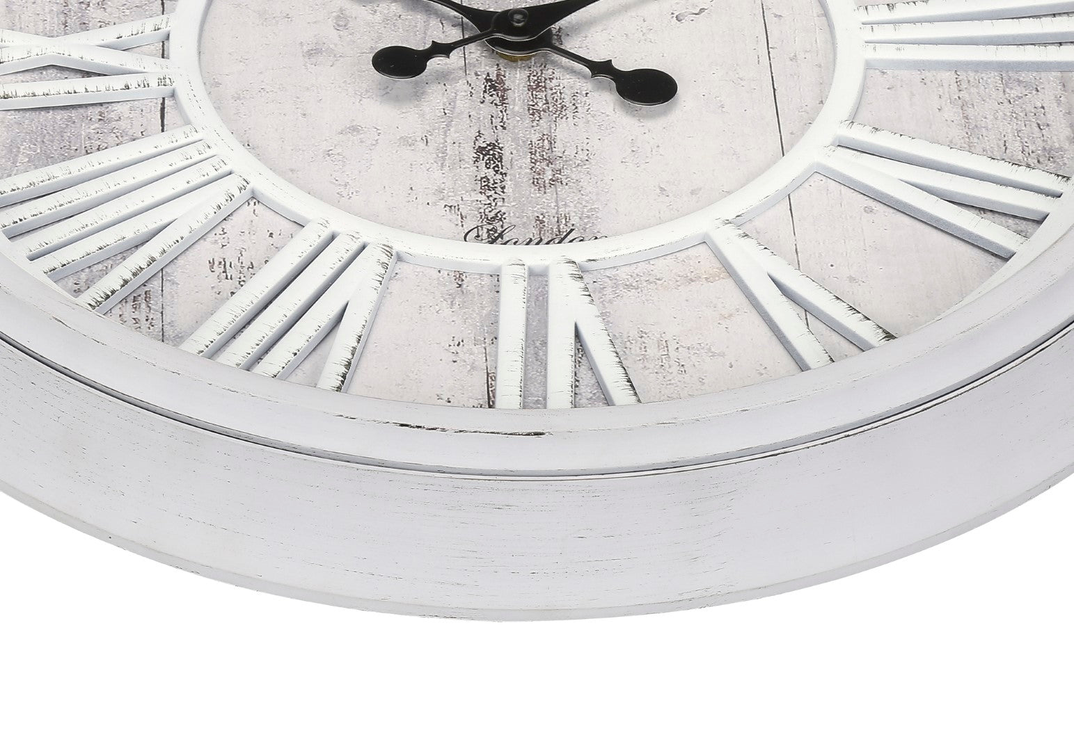 - This trendy 20" round wall clock in light grey with a printed rustic backdrop, looks chic and stylish in transitional home decors.