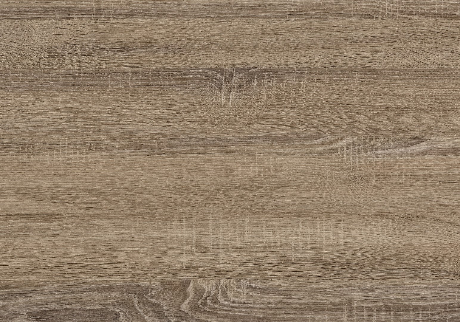 - Spacious desktop in a chic dark taupe wood-look laminated finish