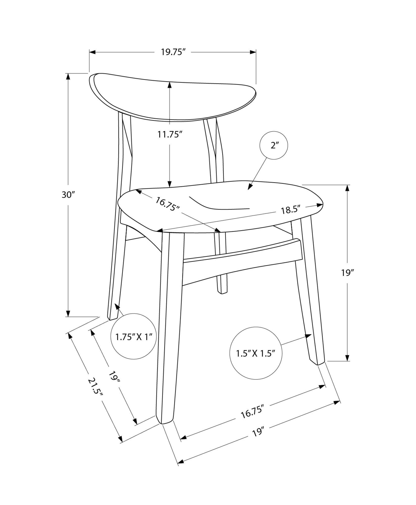 - Product dimensions: 19.75 in. L x 21.5 in. D x 30"H