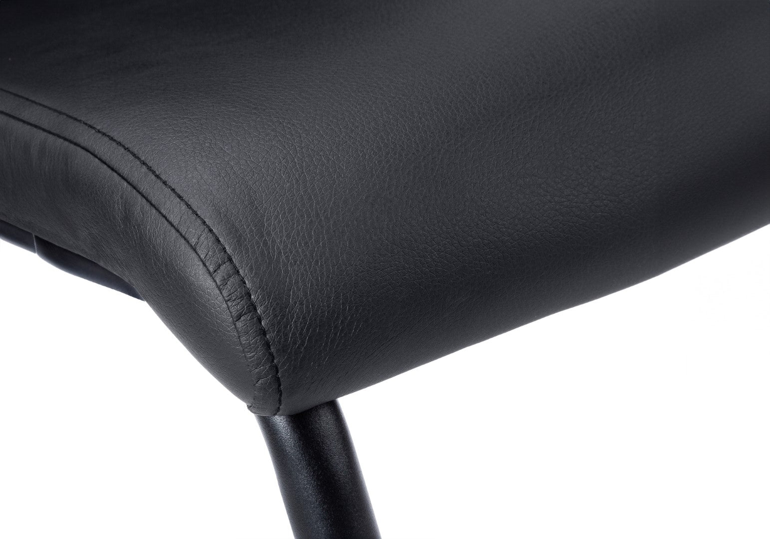 - Supported by a solid U-shaped black metal base, these kitchen chairs are upholstered in a black easy-to-clean leather-look material with two vertical rows of stitching for added elegance