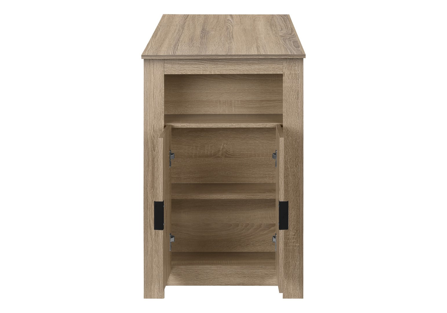 - Perfect for small kitchens, this counter height table offers convenient storage with an open shelf on the side and a closed cabinet with 2 fixed shelves.