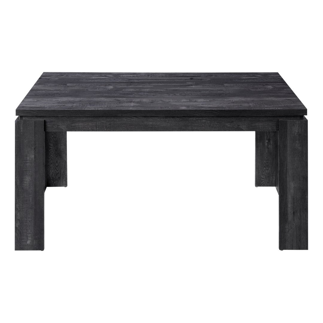 - Dining table in a trending black reclaimed wood look finish with thick, block-style legs to keep everything in its place during your large gatherings