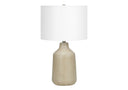 - Combining some vintage inspiration in a contemporary form, this smooth and stylish 24"h beige concrete table lamp, with an ivory fabric drum shade and topped with a round black finial, makes an eye-catching statement in all spaces.