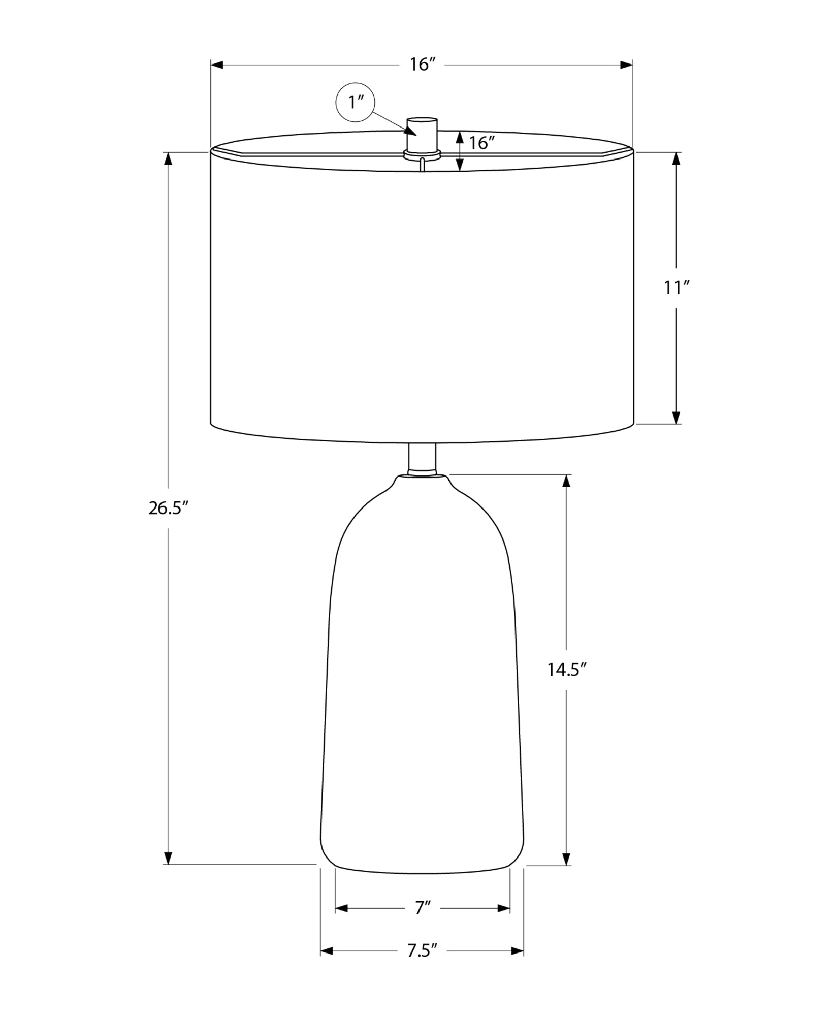 - base: 7.5 in. L x 7.5 in. W x 14.5 in. H