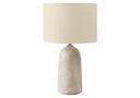 - This 27"h table lamp features an elegant beige ceramic base and a coordinating linen-blend beige fabric shade, making it a perfect accent piece for any modern living room, bedroom, or office decor.