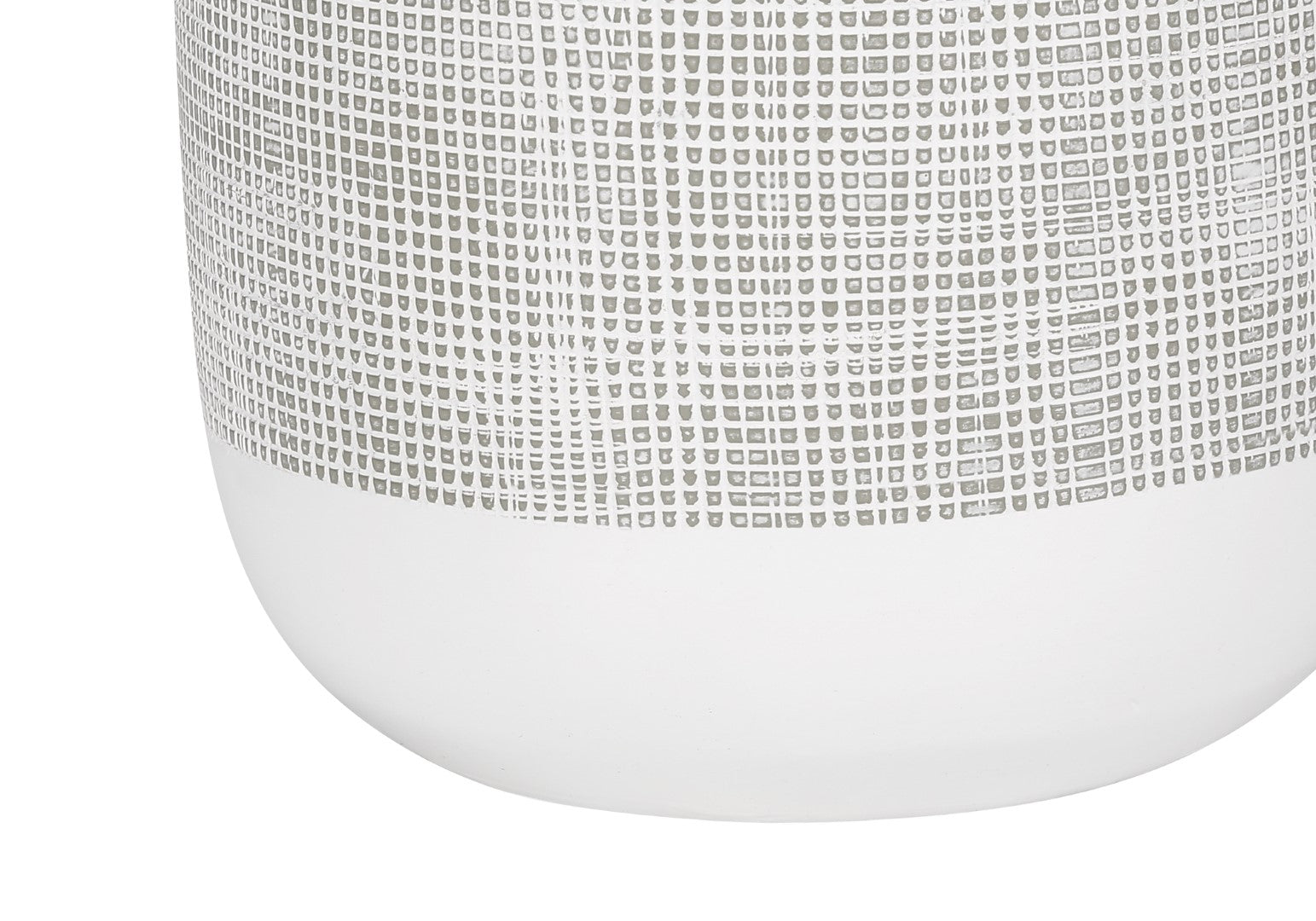 - Combining a smooth white with a textured grey finish on the vase-shaped base on this 27"h ceramic table lamp, topped with a beige linen drum shade and finished with a silver finial on top, brings a fresh, fashionable style to any contemporary living room, bedroom, or office space.