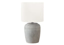 - This 17"h table lamp features a stylish, textured beige ceramic base paired with a contemporary ivory fabric shade, perfect for adding a fashionable touch to your living room, bedroom or home office decor.