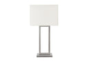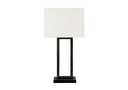 - Illuminate your home with this fashionable and trendy 28"h table lamp, designed in sleek black metal and an elegant ivory fabric shade, perfect for any living room, bedroom, or office space.