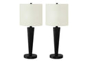 - Brighten up your office, livingroom, bedroom with this set of 2 sleek, 24"h contemporary accent table lamps in a black metal finish, with stylish ivory linen tapered drum shades and topped with a decorative black metal finial.