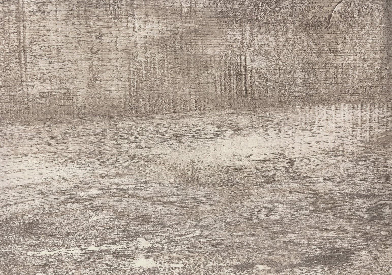 - Contemporary TV stand in a casual two-tone espresso and taupe reclaimed wood-look