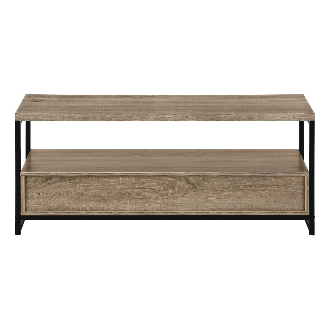 - Contemporary, industrial-inspired design finished in a dark taupe wood-look finish