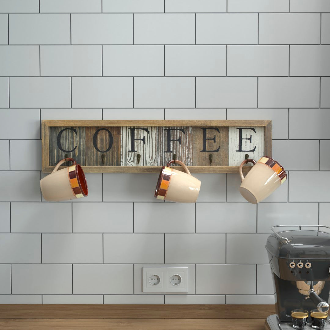 - Contemporary Printed Wooden Wall Mount Coffee Cup Rack